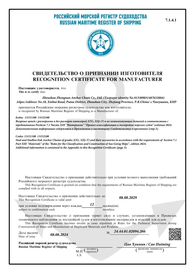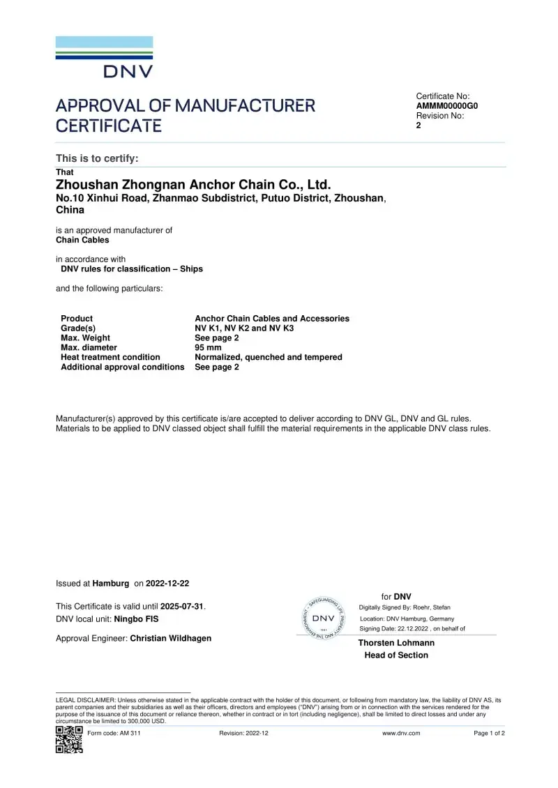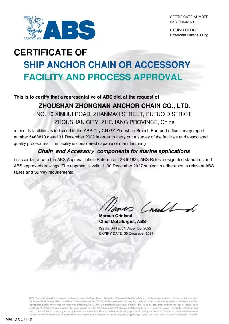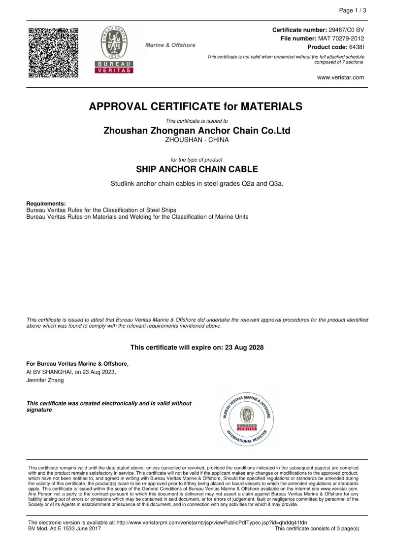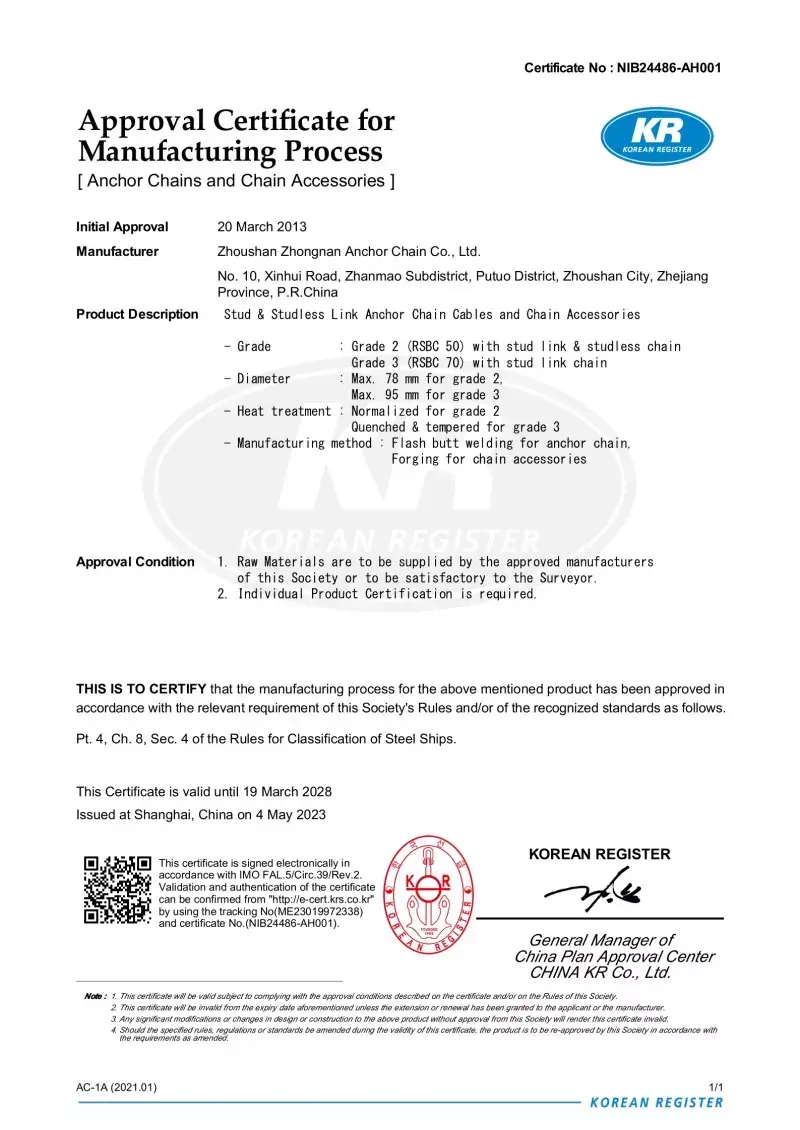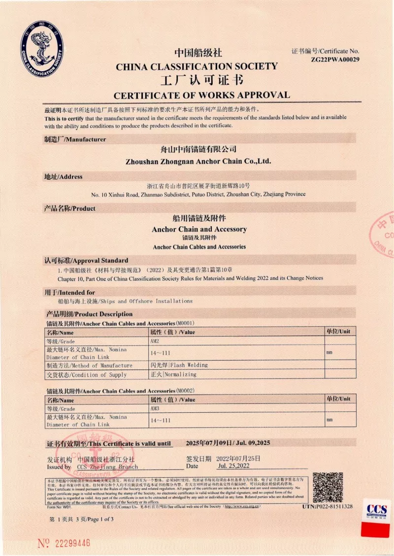 हो। हाम्रा सबै ए ch ्गर चेन सामानहरू CCS, BRV, kr, ka, र रु। यी प्रमाणपत्रहरूले सुनिश्चित गर्दछ कि उपकरणहरूले वैश्विक व्यक्तित्व, सुरक्षा र यांत्रिक शक्तिका लागि आवश्यकताहरू पूरा गर्दछ।